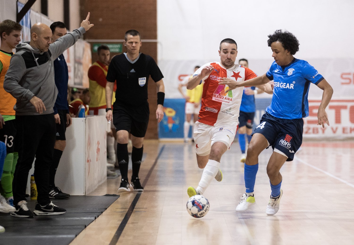 Již bez Dominika Baloga, který odešel na hostování do Helasu Brno, zato před zraky trenéra Plzně a čerstvě i české reprezentace Marka Kopeckého, začalo utkání divoce. Již po 40 vteřinách hry se domácím povedl brejk dvou na jednoho, zakončující Míča ale i díky včasnému vyběhnutí brankáře Victora netrefil zařízení. Za minutu pak na druhé straně vystřelil André a jeho přízemní ránu stačil brankář Vondráček jen ztlumit, míč se však do sítě přece jen dokutálel. Hosté vedli a byl to mimochodem letošní jubilejní stý gól Chrudimi v nejvyšší soutěži. Od té doby se hrál neurovnaný futsal s minimem šancí, a když už se třeba Záruba do jedné dostal, nasměřoval svůj pokus těsně mimo. Proto přišla v 9. minutě jako blesk z čistého nebe vyrovnávací branka, při níž neměl čisté svědomí gólman Victor, jehož zastihla nemastná neslaná střela Sandetskyi nekoncentrovaného – 1:1. Vrátit Východočechům vedení mohl za dvě minuty po nástřelu Evertona Igor, pokusu ale opět scházelo několik decimetrů. Hosté měli mírnou převahu, když však brankou neskončila ani rána Pavla Drozda z první či v 17. minutě po efektním uvolnění pokus Andrého, odcházela obě mužstva do kabin za nerozhodného stavu.