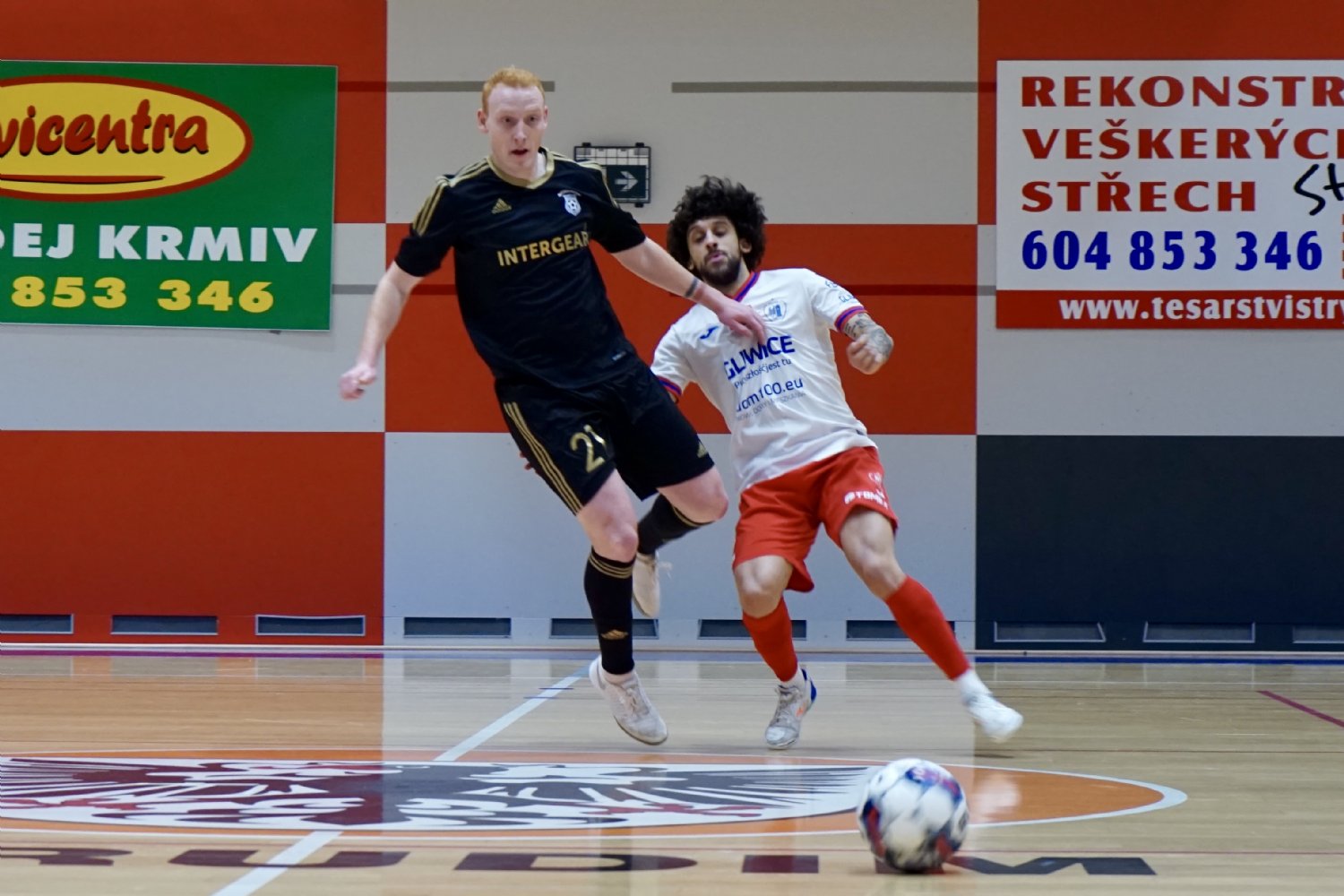 Zaměstnanější byl v prvním poločase rozhodně chrudimský Špánik, interní souboje hlavně s Pegachou ale vyhrával a také střelu Lazzarettiho dokázal špičkou sálovky vykopnout na roh. V 9. minutě pak Vini Lanza nastřelil po rychlé akci břevno. Na druhé straně předvedli dva zajímavé pokusy Stránský s Maxem, první však vyrazil gólman Król a druhý šel těsně mimo. Stav se tak měnil až ve 14. minutě, kdy si na přihrávku Grycyny pěkně naběhl novic Kuchta a levačkou po zemi vyrovnal na 1:1. Z nerozhodného stavu se ale Chrudimští těšili jen nějakých 43 vteřin, než se krásně uvolnil Dill a vrátil Piastu vedení. To navíc o dvě minuty později navýšil ještě Juninho (1:3). Poslední čtyři minuty první půle hráli Východočeši s pěti akumulovanými fauly a v 18. minutě přišla po faulu Bíška prodloužená penalta, kterou zkušeně proměnil Bertoline. Krátce před přestávkou ještě nastřelil brankář Król z dálky břevno.