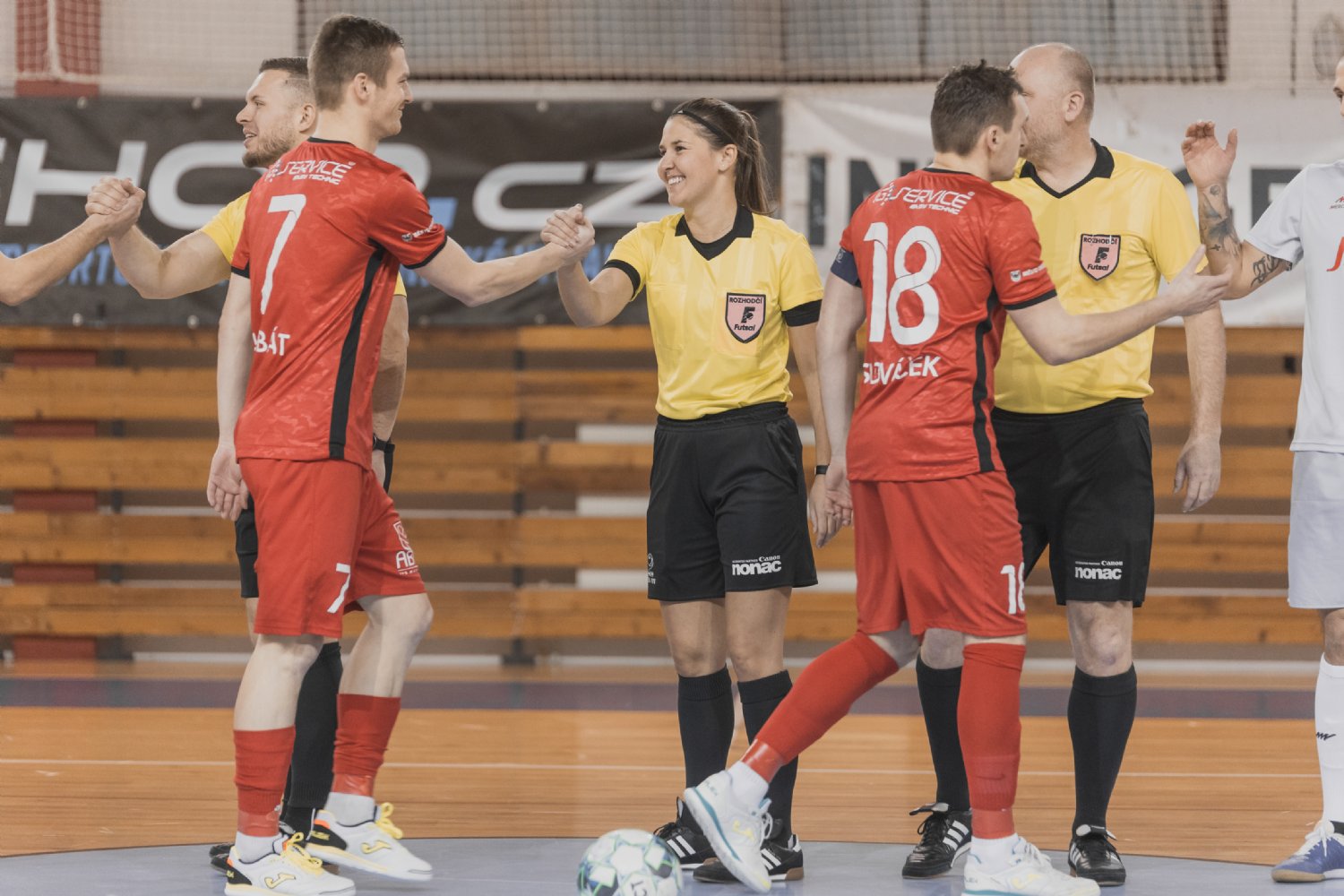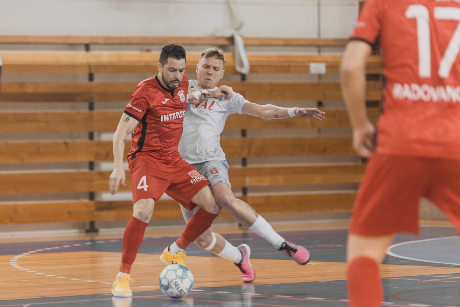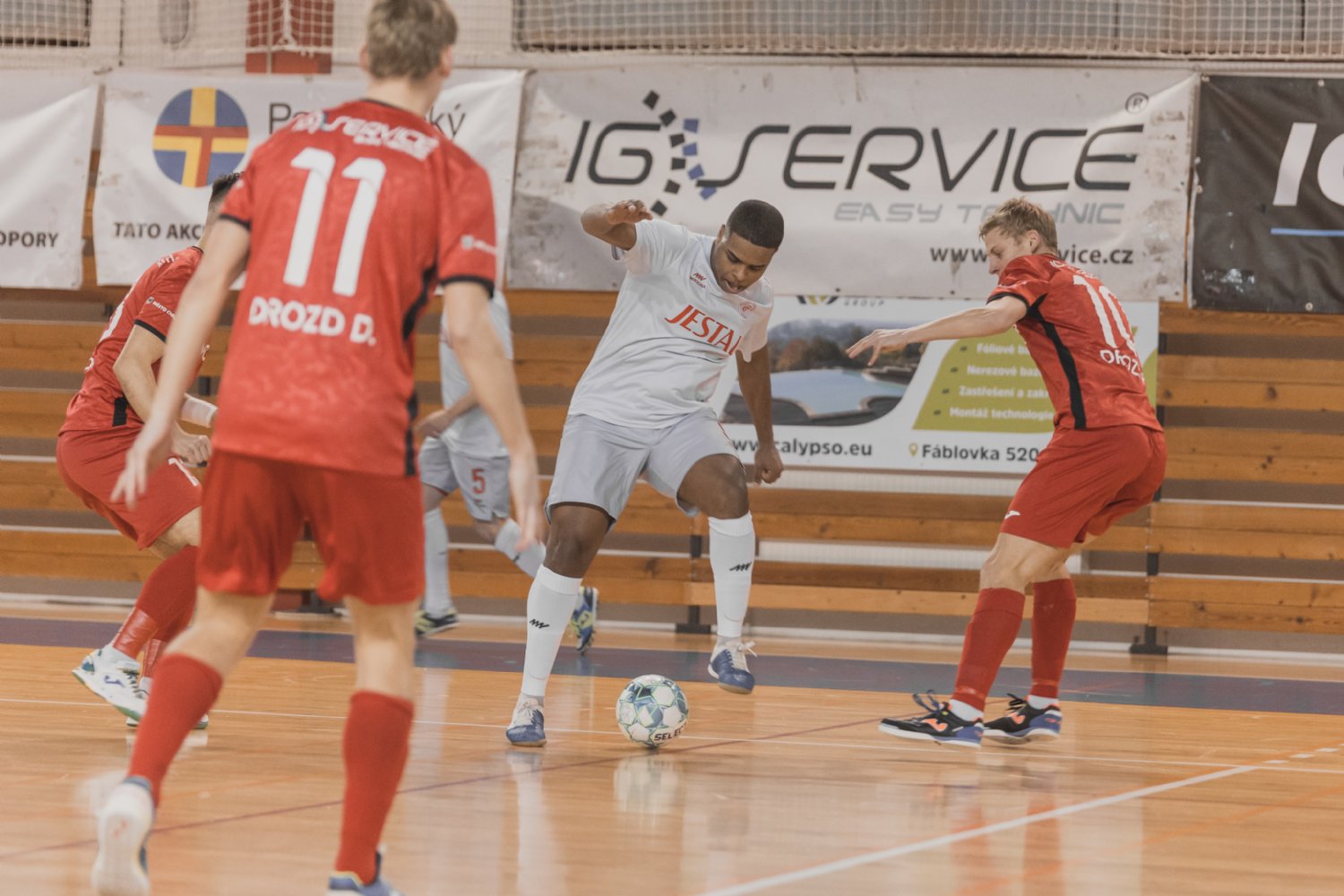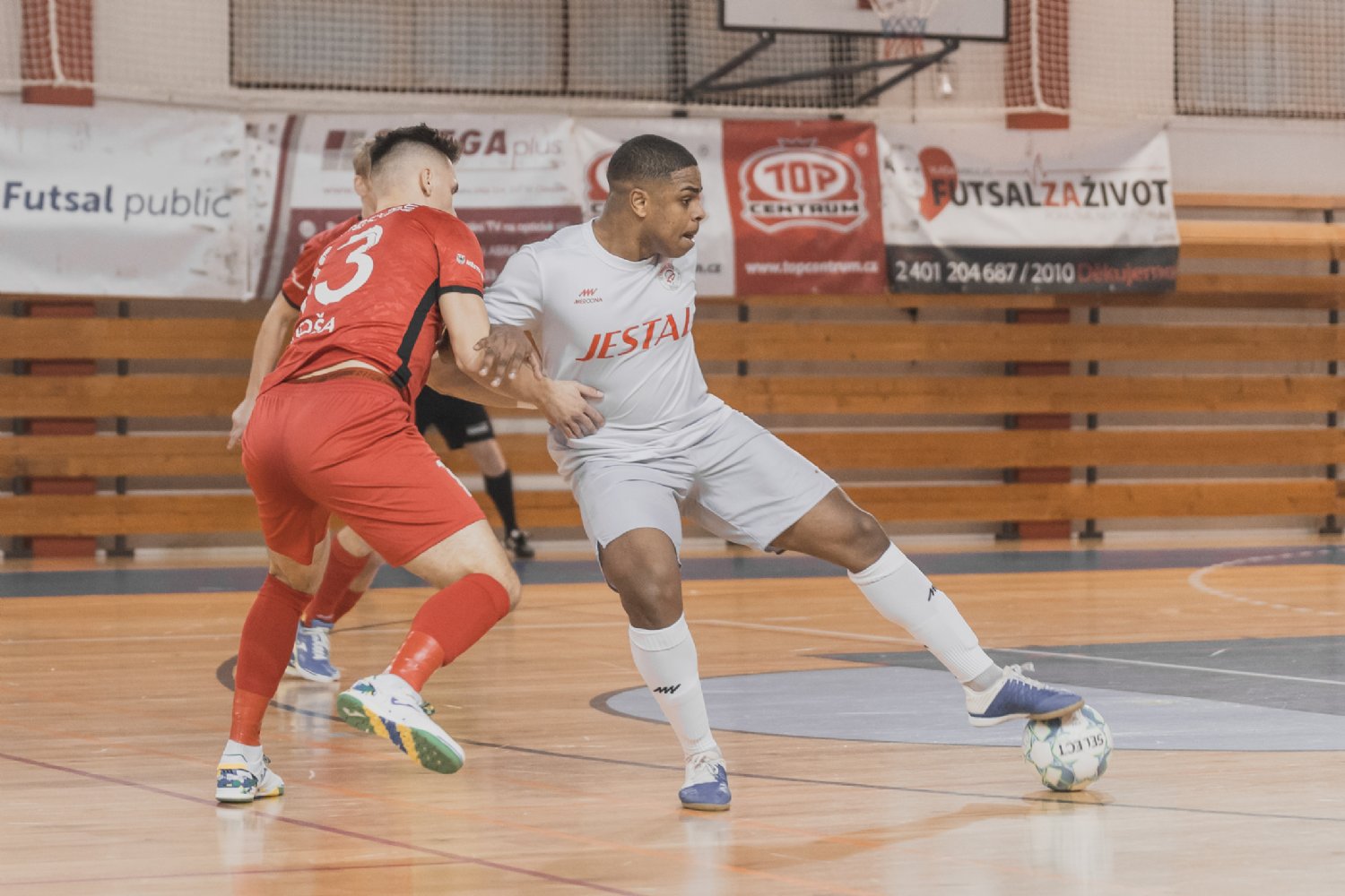 Ve zbytku první půle se již prosazovali pouze chrudimští futsalisté. V rozmezí 11. a 15. minuty se dvakrát prosadil Everton, chvíli na to využil nepřesnosti v rozehrávce soupeře Matěj Slováček a stal se druhým dvougólovým střelcem v utkání. Minutu před koncem dokonal hattrick nahrávek David Drozd, který v akci dva na jednoho narazil Martinovi Došovi a ten upravil na poločasových 5:1.